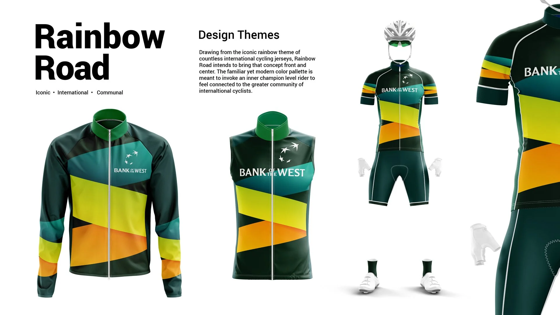 Coming up with a Sponsorship Jersey that made the wearers feel proud as well as represent the Bank of the West identity took a well strategized and visual process to reach success. Although the ride was ultimately canceled due to the global pandemic, there was still a fruitful product that came from the design brief and initiative.